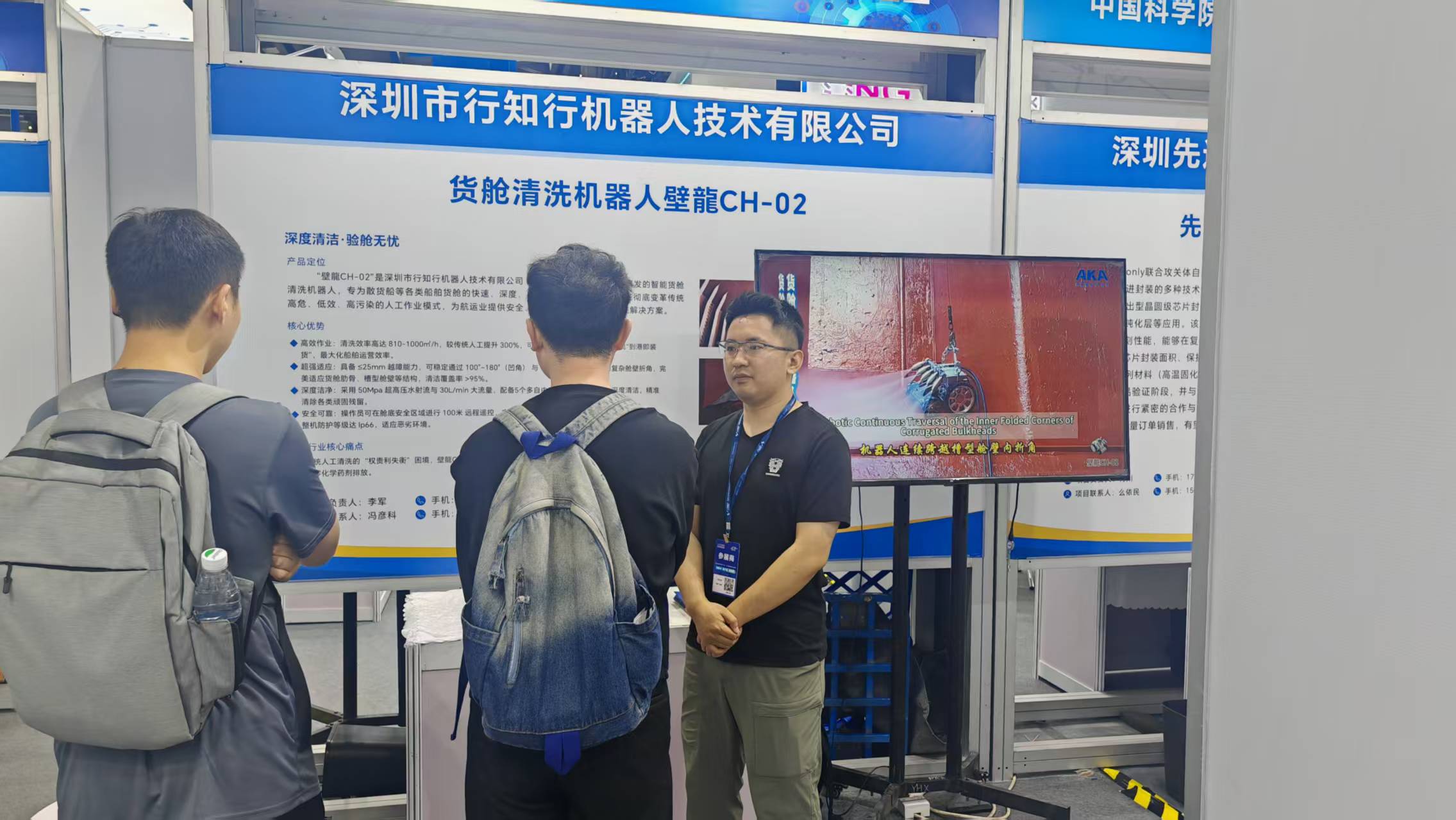 The WallHiker CH-02 on display is an intelligent solution independently developed by the company to address pain points in the shipping industry. It deeply integrates magnetic adsorption, ultra-high-pressure water jetting, and intelligent control technologies, designed specifically for fast, thorough, and automated cleaning of ship cargo holds such as bulk carriers.